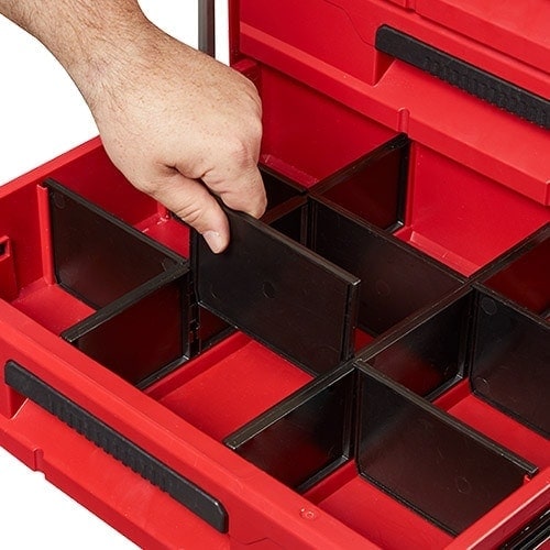 - 一体式快调分隔器,便于用户为工具和配件定制抽屉布局
